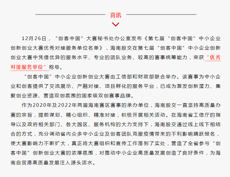 歲序常易,萬象更新。2022年,是黨和國家事業(yè)發(fā)展進程中十分重要的一年,是區(qū)域性股權市場行業(yè)改革發(fā)展的一年,也是海南股交加快創(chuàng)新的一年。翻開一年的答卷,提升、認可、突破是海南股交全年工作的最美底色。這一年...