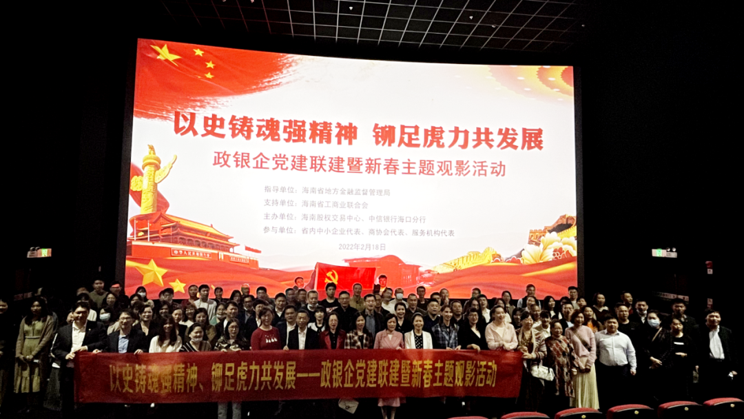 為發(fā)揮黨建引領作用,加強政銀企溝通互動,近日,海南股交聯(lián)合中信銀行海口分行開展“以史鑄魂強精神、鉚足虎力共發(fā)展”政銀企黨建聯(lián)建暨新春主題觀影活動。此次活動得到了海南省地方金融監(jiān)督管理局、海南省工商業(yè)聯(lián)...