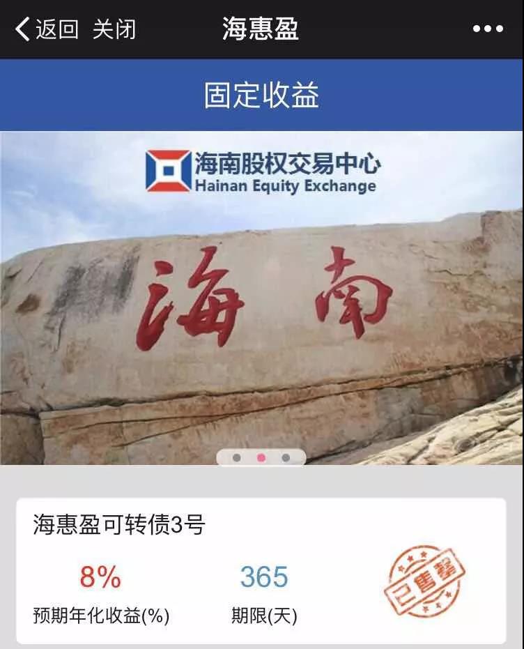 2月1日上午,海南股權(quán)交易中心在“海惠盈”綜合金融服務(wù)平臺(tái)正式上線?;萦赊D(zhuǎn)債3號(hào),總額度為300萬元。2月2日晚,本次可轉(zhuǎn)債在35小時(shí)內(nèi)迅速完成所有認(rèn)購(gòu),完美收官。?;萦赊D(zhuǎn)債3號(hào)是“?;萦逼脚_(tái)目前發(fā)行的首...