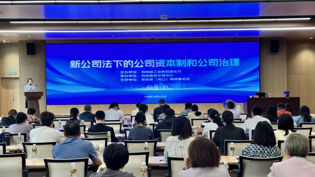 3月22日上午,由海南省工信廳主辦、海南股權(quán)交易中心承辦的“新《公司法》下的公司資本制和公司治理”專題培訓(xùn)在??谂e辦。本次培訓(xùn)旨在幫助我省中小企業(yè)掌握新公司法在公司資本制和公司治理方面的具體內(nèi)容和操作要...