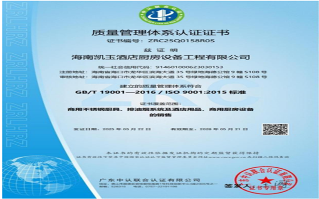 海南凱玉酒店廚房設(shè)備工程有限公司(以下簡(jiǎn)稱(chēng)凱玉廚具或我司)成立于2013年,注冊(cè)資金2800萬(wàn),地處海南省??谑?。歷經(jīng)多年發(fā)展,已在海南股權(quán)交易中心上市,是海南省行業(yè)中率先獲得十星級(jí)售后服務(wù)證書(shū),通過(guò)ISO9001:2015質(zhì)量管理體系認(rèn)證、ISO14001:2015環(huán)境管理體系認(rèn)證、GB/T45001-2020職業(yè)健康安全管理體系認(rèn)證、AAA企業(yè)信用等級(jí)認(rèn)證、中國(guó)安全生產(chǎn)標(biāo)準(zhǔn)化一級(jí)企業(yè)認(rèn)證、中國(guó)廚房設(shè)備工程行業(yè)一級(jí)認(rèn)證、燃?xì)馊紵骶甙惭b維修能力一級(jí)認(rèn)證、采用國(guó)際標(biāo)準(zhǔn)認(rèn)證并由政府部門(mén)審查頒發(fā)證書(shū)的企業(yè)(詳見(jiàn)專(zhuān)業(yè)資質(zhì)文件),一般納稅人A級(jí)信用企業(yè)、海南省酒店與餐飲行業(yè)協(xié)會(huì)副會(huì)長(zhǎng)單位、中國(guó)廚具行業(yè)十大品牌、中國(guó)著名品牌、2021年度中國(guó)國(guó)際飯店業(yè)優(yōu)質(zhì)廚房設(shè)備供應(yīng)商推薦品牌、2022年度中國(guó)飯店業(yè)高質(zhì)量發(fā)展設(shè)備供應(yīng)商品牌、酒店用品與設(shè)備供應(yīng)商等級(jí)認(rèn)證甲級(jí)企業(yè)、國(guó)家高新技術(shù)企業(yè)、專(zhuān)精特新企業(yè)、海南省專(zhuān)精特新中小企業(yè)證書(shū)。 本公司擁有自主產(chǎn)權(quán)辦公大樓、產(chǎn)品體驗(yàn)中心以及自主生產(chǎn)基地(位于海南省??谑旋埲A區(qū)城西鎮(zhèn)蒼嶧二路4號(hào),園區(qū)面積達(dá)1245平方米,購(gòu)置行業(yè)內(nèi)一流生產(chǎn)加工設(shè)備),擁有多項(xiàng)產(chǎn)品專(zhuān)利技術(shù),創(chuàng)立了椰爐、椰灶兩大爐具自主品牌,主要為大型星級(jí)酒店、大型企事業(yè)單位、地產(chǎn)公司、餐飲企業(yè)等提供專(zhuān)業(yè)的廚房設(shè)備及排油煙系統(tǒng)供貨、安裝及設(shè)計(jì)服務(wù)。