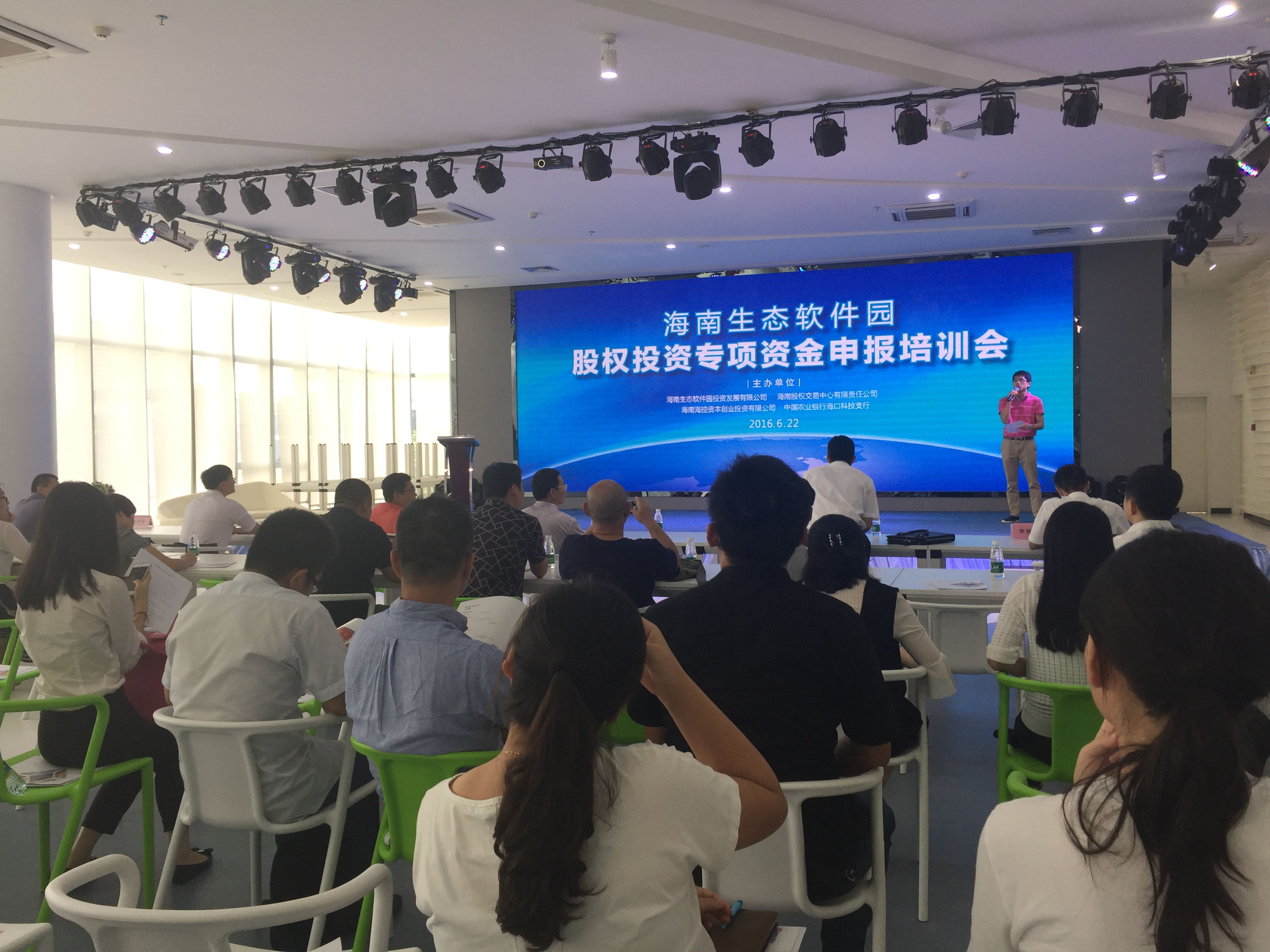 6月22日下午,海南股權交易中心聯合海南生態(tài)軟件園,在海南老城經濟開發(fā)區(qū)海南生態(tài)軟件園綜合展示中心,舉辦了針對園區(qū)注冊企業(yè)的股權投資專項資金申報培訓會。25家企業(yè)代表參加了本次培訓班。