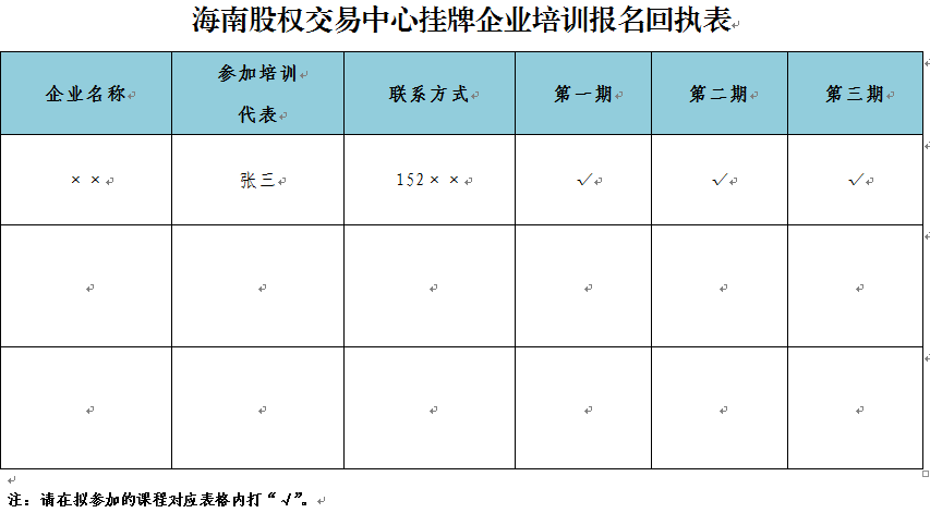 請有意向參加培訓(xùn)的掛牌企業(yè)于2015年7月27日前將報名回執(zhí)表發(fā)送至郵箱:yangyanghua@hnexchange.com。
