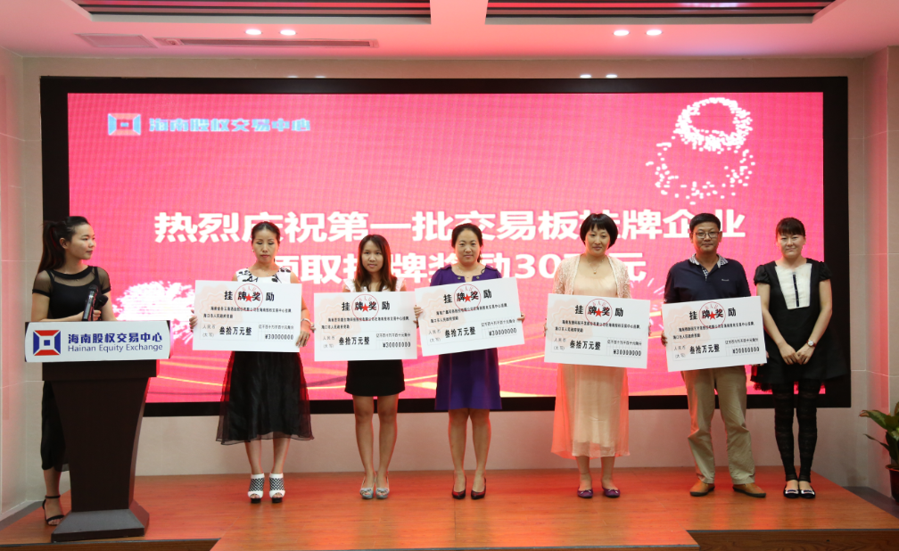 9月11日下午,海南股權(quán)交易中心掛牌企業(yè)獎(jiǎng)勵(lì)發(fā)放儀式在海南生態(tài)軟件園B13號(hào)舉辦。海口市財(cái)政局富天放副局長(zhǎng)、企業(yè)處曾文麗處長(zhǎng)和海口市金融辦馬濟(jì)淵副主任出席了活動(dòng),??谑惺着?0家交易板掛牌企業(yè)分別獲得了30萬(wàn)元的財(cái)政獎(jiǎng)勵(lì)。