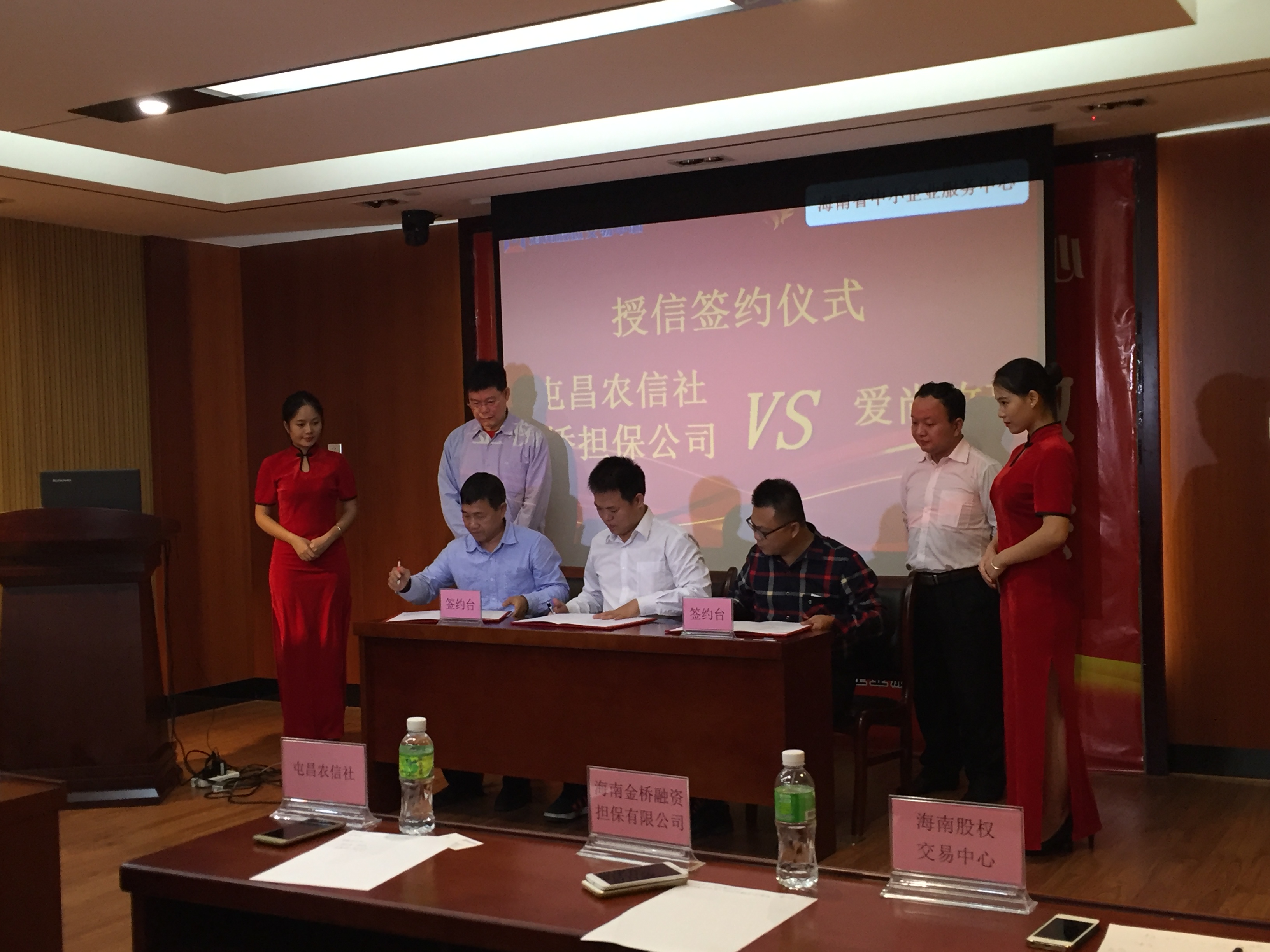 現(xiàn)場(chǎng),屯昌縣農(nóng)村信用合作聯(lián)社、海南金橋融資擔(dān)保有限公司分別與股交中心掛牌企業(yè)海南愛(ài)尚玫瑰實(shí)業(yè)有限公司、海南臺(tái)莉早餐服務(wù)有限公司簽訂授信協(xié)議,就開(kāi)展合作達(dá)成初步意向。隨后,海南臺(tái)莉早餐服務(wù)有限公司許正章作為簽約企業(yè)代表進(jìn)行了發(fā)言。