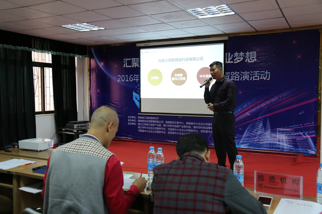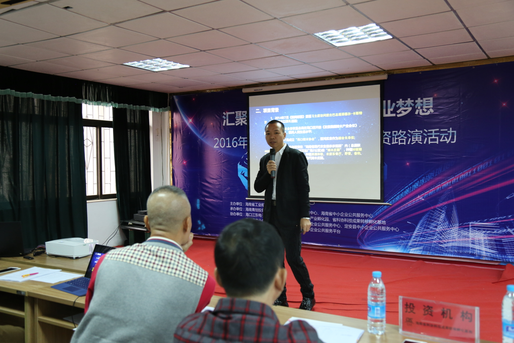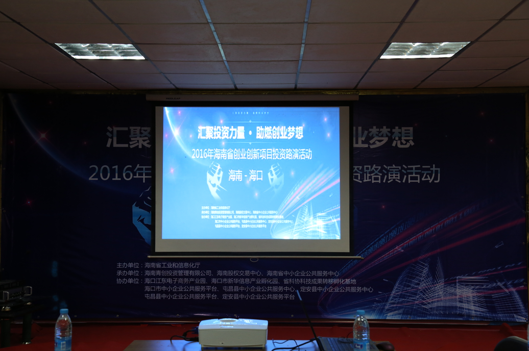 11月24日,“匯聚投資力量,助燃創(chuàng)業(yè)夢想——2016年海南省創(chuàng)業(yè)創(chuàng)新項(xiàng)目投資路演”在海南省科技活動(dòng)中心順利舉行,同時(shí)這也是海南股權(quán)交易中心第16期企業(yè)路演?;顒?dòng)由海南省工業(yè)和信息化廳主辦,海南股權(quán)交易中心、海南青創(chuàng)投資管理有限公司、海南省中小企業(yè)服務(wù)中心聯(lián)合承辦,??诮瓥|電子商務(wù)產(chǎn)業(yè)園等多家單位協(xié)辦。9家路演企業(yè)、團(tuán)隊(duì)及6家投資機(jī)構(gòu)參加此次路演活動(dòng)。