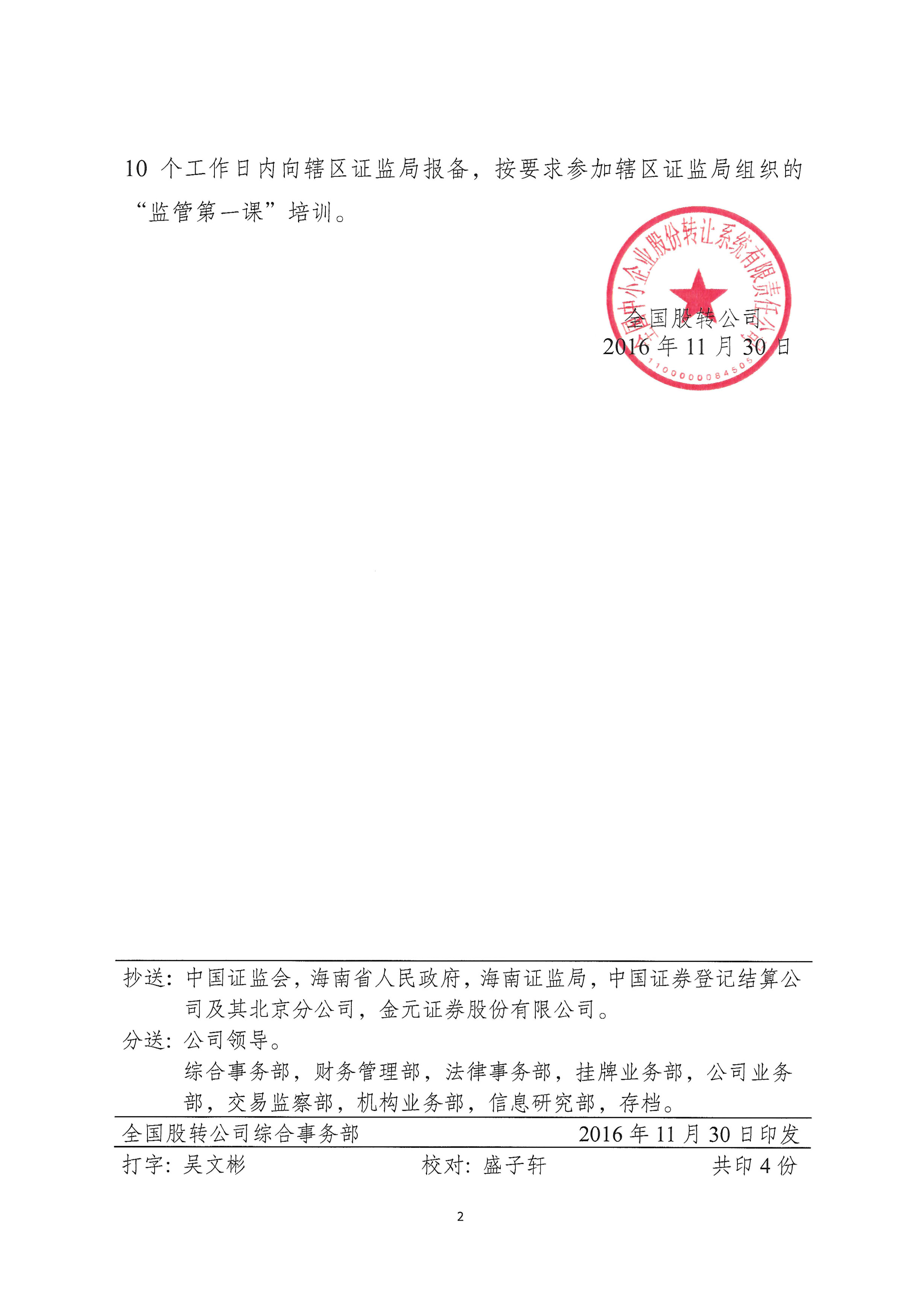 附:《關(guān)于同意海南傳味文昌雞產(chǎn)業(yè)股份有限公司股票在全國(guó)中小企業(yè)股份轉(zhuǎn)讓系統(tǒng)掛牌的函》