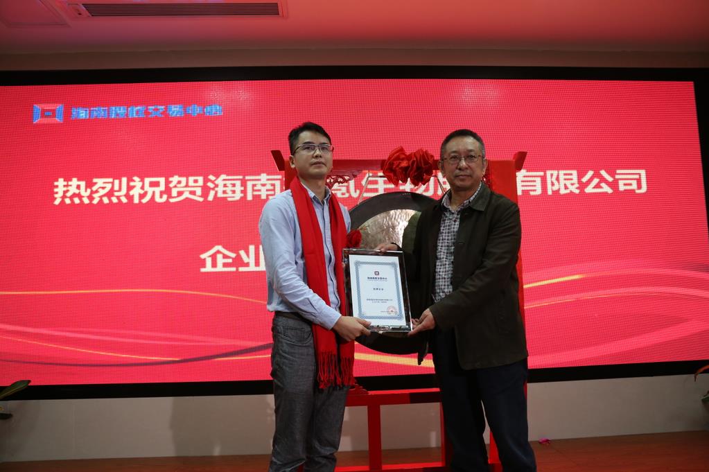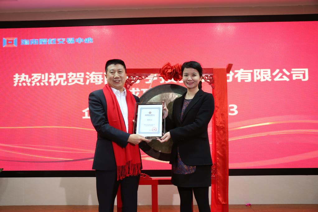 12月28日,海南股權(quán)交易中心成立兩周年之際,在股交中心“助力中小微企業(yè)發(fā)展工程”啟動(dòng)暨企業(yè)集體掛牌儀式上,一共有10家企業(yè)正式掛牌股交中心,海南金融控股股份有限公司副總經(jīng)理吳子魁,海南股權(quán)交易中心副總經(jīng)理吳惠玉、副總經(jīng)理程棟才、副總經(jīng)理許博分別與企業(yè)共同鳴鑼并向企業(yè)代表授牌。