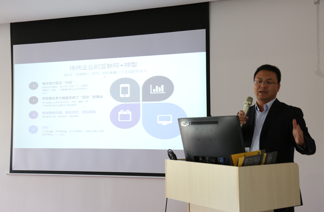楊亞輝、陳東陽還分別就“傳統(tǒng)企業(yè)的互聯(lián)網(wǎng)+轉型”、“傳統(tǒng)快消品怎么玩出互聯(lián)網(wǎng)+”主題作精彩的分享,充分闡述了在互聯(lián)網(wǎng)+背景下,企業(yè)如何采取措施,做出積極的應對和改變?;顒拥玫搅似髽I(yè)的積極肯定與認可,各企業(yè)還就自身關切的問題與嘉賓進行了咨詢和交流。