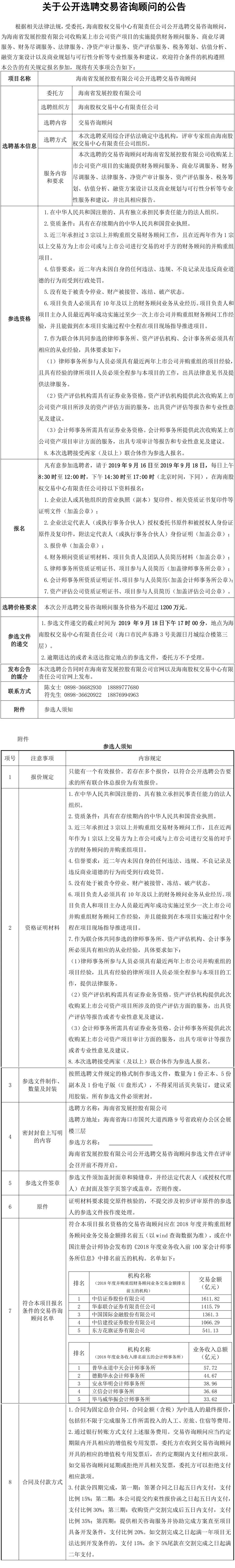 【公開(kāi)選聘】海南省發(fā)展控股有限公司公開(kāi)選聘交易咨詢顧問(wèn)