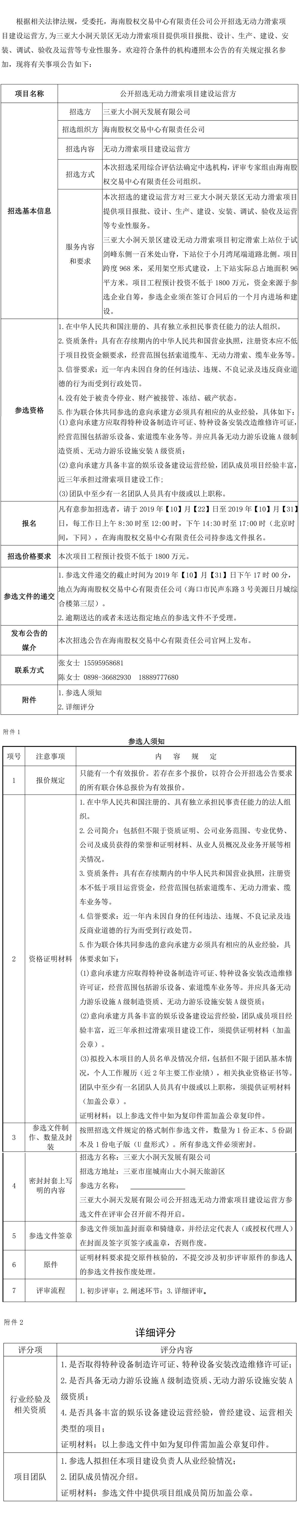 三亞大小洞天發(fā)展有限公司公開招選無動力滑索項目建設(shè)運營方