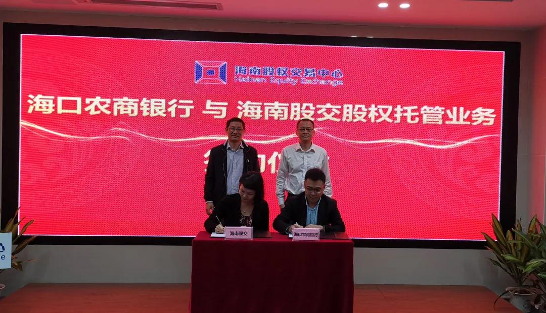 在現(xiàn)場領(lǐng)導(dǎo)、嘉賓的見證下,海南股交與??谵r(nóng)商銀行正式簽署銀行股權(quán)登記托管協(xié)議,海口農(nóng)商行成為今年7月中國銀保監(jiān)會發(fā)布《商業(yè)銀行股權(quán)托管辦法》以來,率先在海南區(qū)域性股權(quán)交易市場運(yùn)營機(jī)構(gòu)成功托管股權(quán)的非上市商業(yè)銀行,這對我省商業(yè)銀行股權(quán)托管工作極具示范意義。