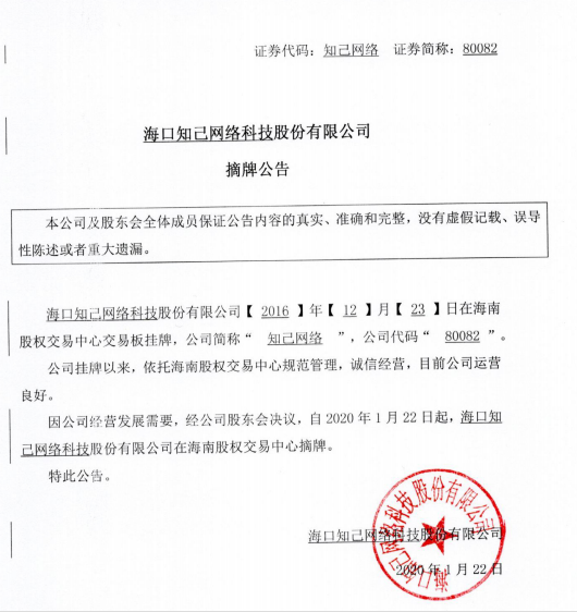 80082 ??谥壕W(wǎng)絡(luò)科技股份有限公司:摘牌公告