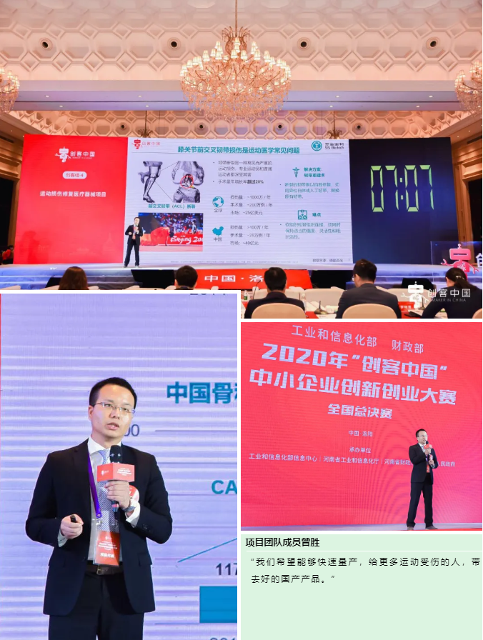 近日,由工業(yè)和信息化部、財政部、河南省人民政府主辦的2020年“創(chuàng)客中國”中小企業(yè)創(chuàng)新創(chuàng)業(yè)大賽全國總決賽在河南省洛陽市舉辦。代表海南出賽的海南蘇生生物科技有限公司的“運動損傷修復(fù)醫(yī)療器械”項目從全國25388個參賽項目中脫穎而出并入選總決賽,最終獲得總決賽創(chuàng)客組二等獎、生物醫(yī)藥類項目第一,為海南省企業(yè)參與創(chuàng)客中國大賽歷史最好成績。海南省工業(yè)和信息化廳、海南省財政廳榮獲2020年“創(chuàng)客中國”大賽優(yōu)秀組織單位,海南股權(quán)交易中心榮獲優(yōu)秀對接服務(wù)單位。