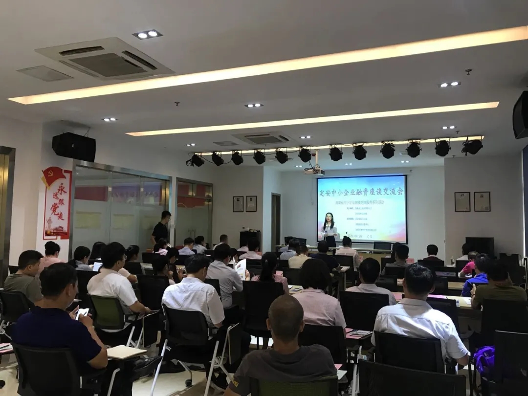 海南省工業(yè)和信息化廳、定安縣科工信局、定安塔嶺工業(yè)園等相關部門、園區(qū)負責人,中國農業(yè)銀行、中國建設銀行、中國郵儲銀行、海南銀行、??谵r商行、??谑腥谫Y擔保、海金控擔保、信聯(lián)盛擔保、定安擔保等金融機構代表及定安中小企業(yè)代表共約50人參加交流會。