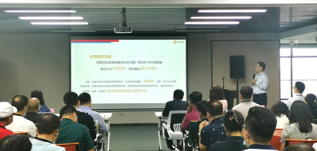 隨后,程棟才向參會(huì)企業(yè)家代表介紹了海南股交的設(shè)立背景、服務(wù)定位、金融產(chǎn)品及海南自貿(mào)港相關(guān)稅收政策等內(nèi)容,分享了公司成立以來助力海南經(jīng)濟(jì)發(fā)展和在服務(wù)我省中小微企業(yè)方面的成就與案例。他表示,海南是一塊充滿希望和活力的創(chuàng)業(yè)興業(yè)熱土,干事創(chuàng)業(yè)氛圍濃厚,在海南自貿(mào)港建設(shè)發(fā)展的新形勢(shì)下,希望更多的省外企業(yè)把握商機(jī),不斷加深對(duì)海南的認(rèn)識(shí)了解,海南股交期待與各省市企業(yè)加強(qiáng)交流、主動(dòng)對(duì)接,為項(xiàng)目落地和企業(yè)后續(xù)發(fā)展提供優(yōu)質(zhì)高效服務(wù)。