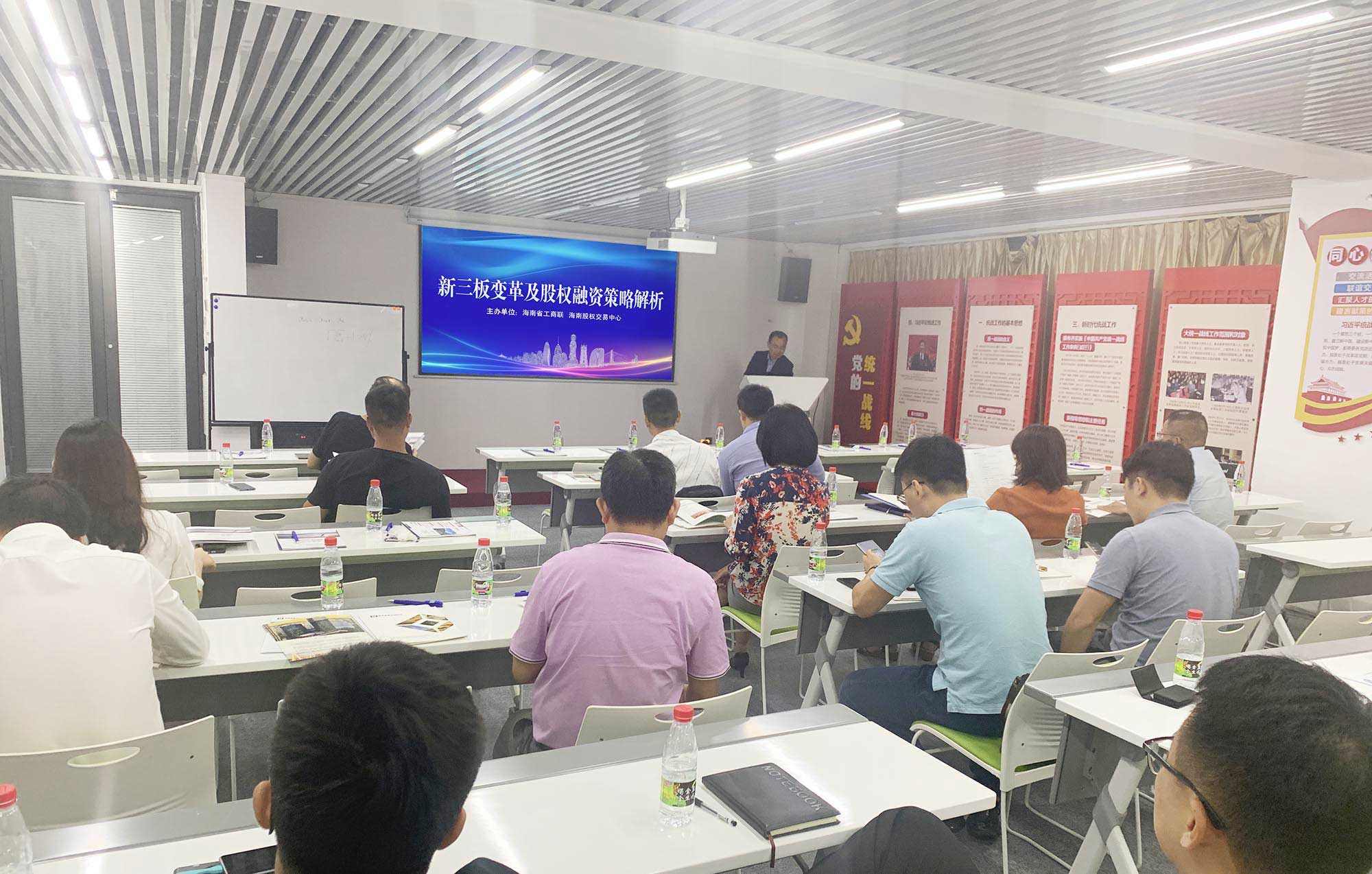 為促進(jìn)我省中小企業(yè)把握當(dāng)前多層次資本市場(chǎng)特點(diǎn)和國(guó)家政策方向,提升戰(zhàn)略決策能力并做好資本路徑規(guī)劃,由海南省工商聯(lián)、海南股權(quán)交易中心聯(lián)合主辦的“資本市場(chǎng)最新情況解讀---新三板變革及股權(quán)融資策略解析”專(zhuān)題講座在??跒I海國(guó)際電子商務(wù)產(chǎn)業(yè)園如期舉行,海南本地40余家企業(yè)參加本次活動(dòng)。