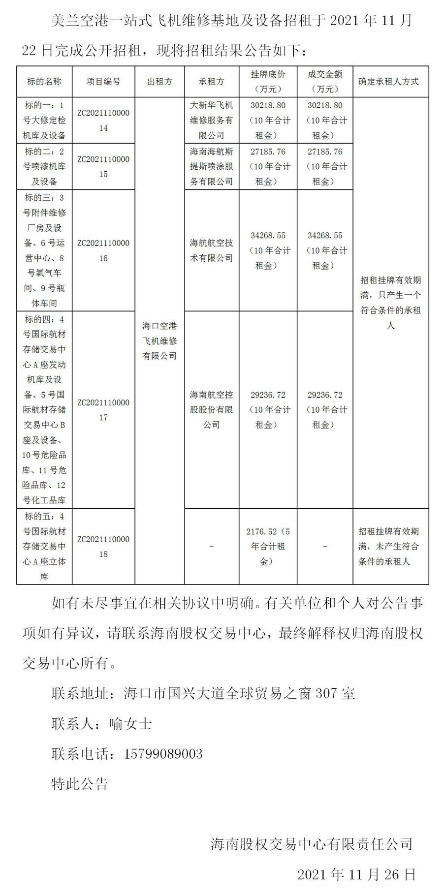 美蘭空港一站式飛機維修基地及設備招租結(jié)果公告