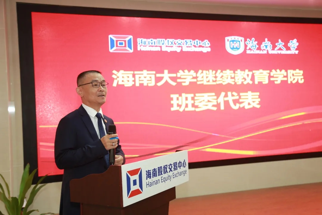 海大資本班班委代表、中青城市建設(shè)(海南)集團(tuán)有限公司董事長徐元芳進(jìn)行了熱情洋溢的發(fā)言。