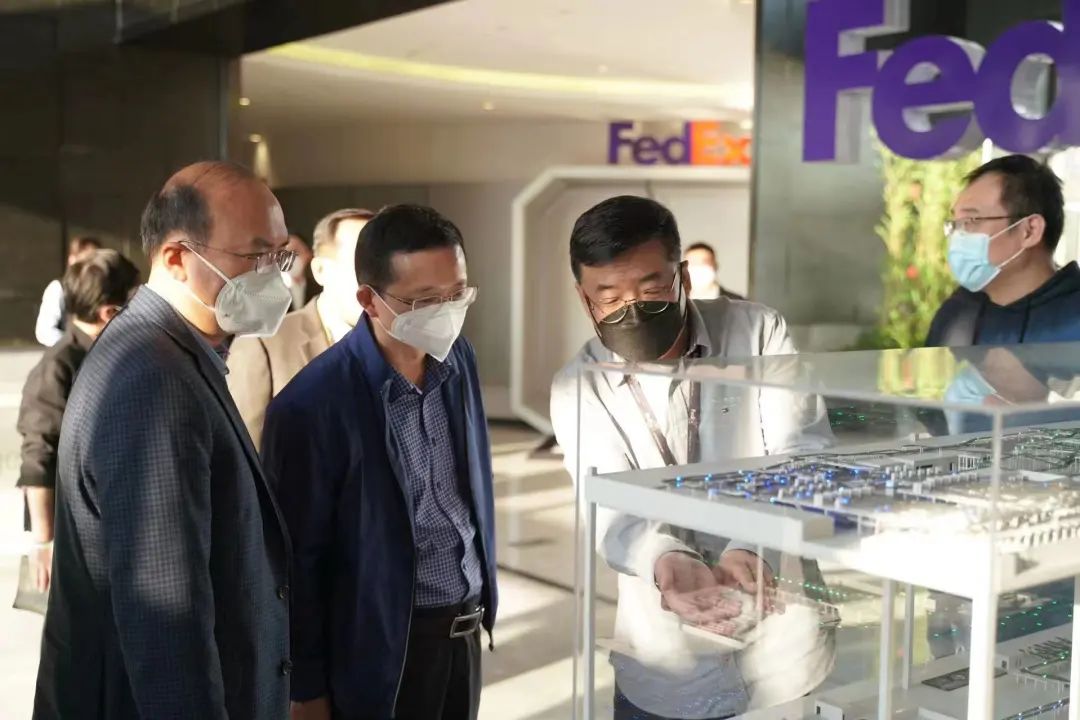 ▲圖:周軍平一行在浦東機(jī)場(chǎng)PACTL貨站參觀沙盤模型
