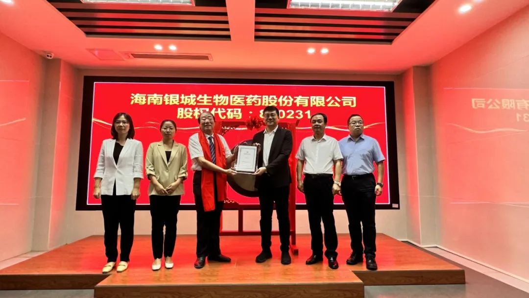 隨后,海南銀城生物董事長曹建中上臺鳴鑼,并接受海南股交頒授的掛牌證書。海南銀城生物此次成功掛牌海南股交交易板,標志著他們向資本市場邁出了重要一步。