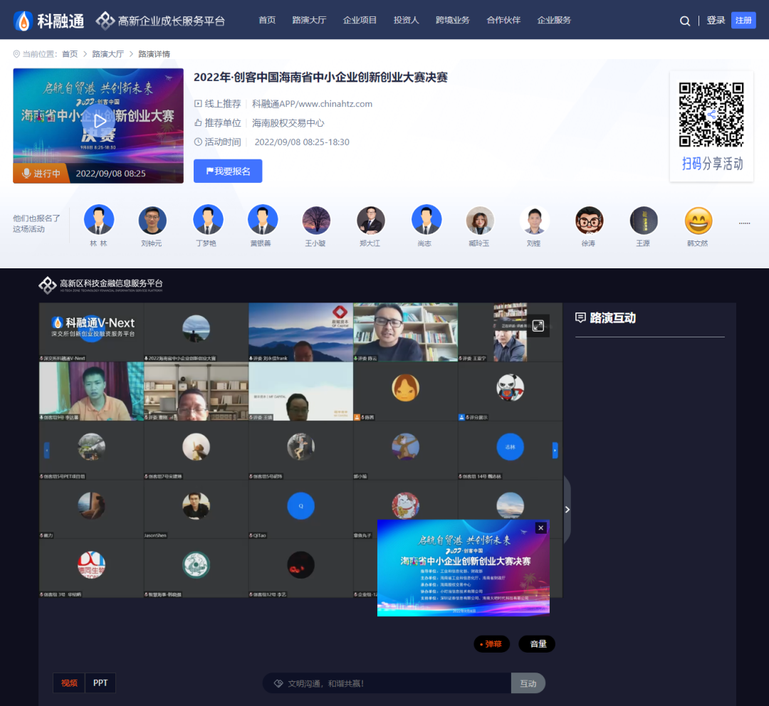 做為第七屆“創(chuàng)客中國”中小企業(yè)創(chuàng)新創(chuàng)業(yè)大賽海南賽區(qū)的承辦單位,在海南省工信廳的指導下,以及省內企政府相關部門、園區(qū)及服務機構的大力支持下,海南股權交易中心積極響應、精心組織,全程參與大賽的對接服務工作,通過線上線下為參賽項目提供賽事組織、賽前培訓、沖刺輔導等一系列活動,保障了大賽的順利組織及后續(xù)服務。自海南賽區(qū)啟動以來,共有290個企業(yè)與創(chuàng)客組踴躍報名參加,涉及生物醫(yī)藥、數字經濟、區(qū)塊鏈、智能制造、新能源、5G技術及運用等眾多領域。