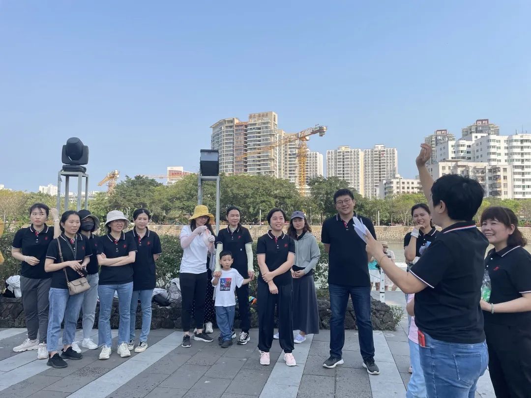 早上8點半,全體員工在海口世紀(jì)公園云洞集合完畢,烈日也阻擋不了大家的興致和熱情,大家精神抖擻,熱情高漲,沿著海邊的漫步道開啟徒步之旅。