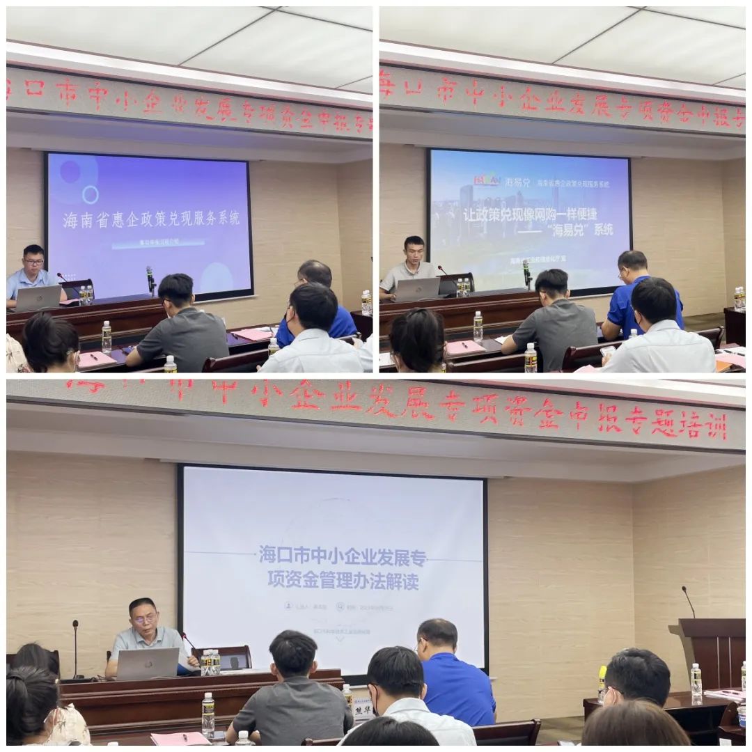 會(huì)上,海口市科工信局及市政務(wù)局政策梳理團(tuán)隊(duì)分別解讀了《??谑兄行∑髽I(yè)發(fā)展專(zhuān)項(xiàng)資金管理辦法》《??谑兄行∑髽I(yè)發(fā)展專(zhuān)項(xiàng)資金線上申報(bào)操作手冊(cè)》,并由海南飛行者科技有限公司現(xiàn)場(chǎng)演示了線上申報(bào)2023年??谑兄行∑髽I(yè)發(fā)展專(zhuān)項(xiàng)資金“精特新中小企業(yè)獎(jiǎng)勵(lì)”。隨后,數(shù)字海南有限公司向參會(huì)企業(yè)講解了“海易兌”平臺(tái)系統(tǒng)架構(gòu)、操作流程等方面內(nèi)容。