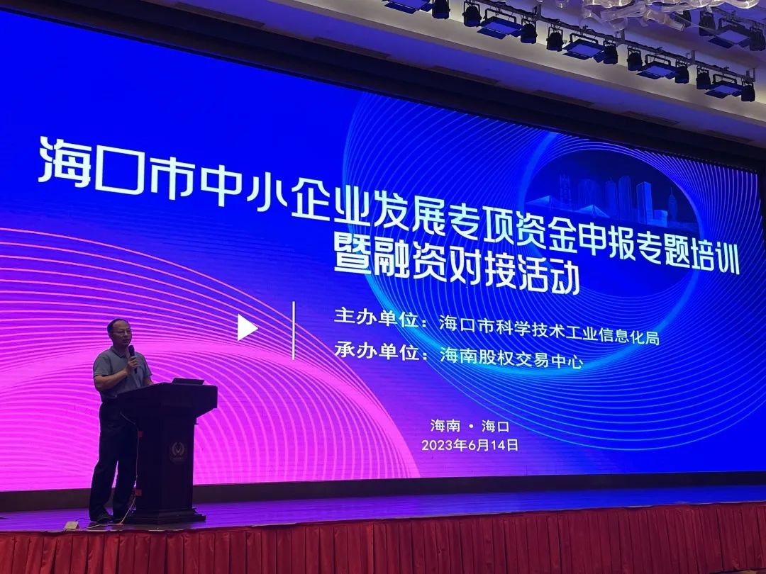 6月14日上午,由海口市科工信局主辦、海南股交承辦的海口市中小企業(yè)發(fā)展專項(xiàng)資金申報(bào)專題培訓(xùn)暨融資對(duì)接活動(dòng)在??谂e辦。
