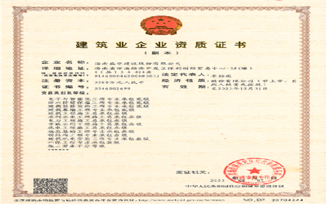 主營(yíng)業(yè)務(wù): | 消防工程配套設(shè)備的安裝、調(diào)試、設(shè)計(jì),消防設(shè)施維護(hù)保養(yǎng)檢測(cè),項(xiàng)目代建,建筑工程,土木工程,水利水電工程,河道疏浚,室內(nèi)外裝修裝飾工程設(shè)計(jì)施工,水電安裝工程,中央空調(diào)安裝工程,電子與智能化工程設(shè)計(jì)施工,機(jī)電設(shè)備安裝工程,環(huán)保工程,公路工程,市政公用工程,電力工程,防雷工程設(shè)計(jì)施工,防雷裝置的檢測(cè),園林綠化工程設(shè)計(jì)施工,通信工程,通信設(shè)備維修,鋼結(jié)構(gòu)工程,人防工程,古建筑工程,古建筑維修,建筑機(jī)械租賃及銷售,船舶設(shè)施制造、維修,消防器材批發(fā)、零售及維修。 |