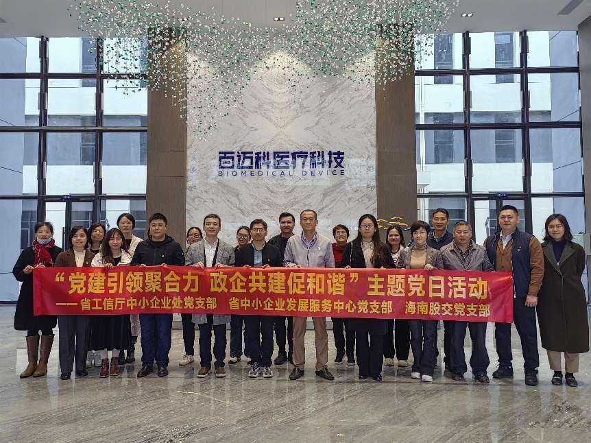 12月21日下午,省工信廳中小企業(yè)處黨支部、省中小企業(yè)發(fā)展服務(wù)中心黨支部、海南股交黨支部赴定安縣海南百邁科生物醫(yī)療科技股份有限公司開展“黨建引領(lǐng)聚合力、政企共建促和諧”主題黨日活動。