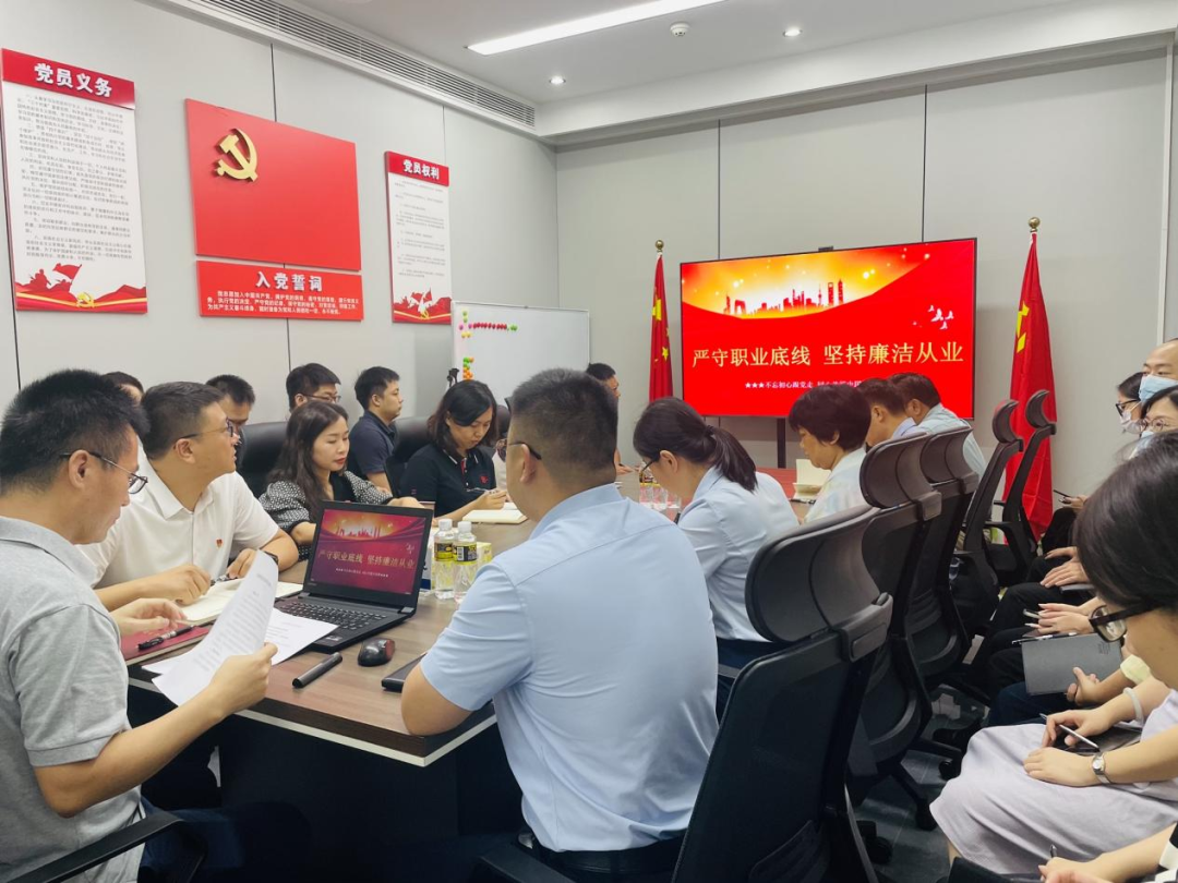 為進(jìn)一步推動黨紀(jì)學(xué)習(xí)教育走深走實(shí),筑牢拒腐防變的思想防線,增強(qiáng)黨員干部職工的廉潔從業(yè)意識,7月31日,海南股交黨支部邀請海南金控紀(jì)檢委員段建銳為全體員工講授“嚴(yán)守職業(yè)底線 堅(jiān)持廉潔從業(yè)”專題黨課,會議由海南股交黨支部書記、董事長朱磊主持。