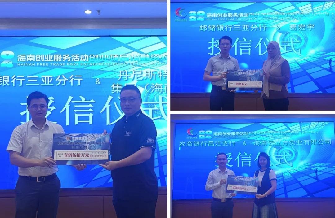 現(xiàn)場(chǎng)舉行了銀行授信儀式,中國(guó)郵政儲(chǔ)蓄銀行、海南農(nóng)村商業(yè)銀行分別為個(gè)人創(chuàng)業(yè)者及初創(chuàng)企業(yè)進(jìn)行授信,授信金額共計(jì)430萬元,為我省創(chuàng)業(yè)企業(yè)及創(chuàng)業(yè)代表的發(fā)展注入資金支持。