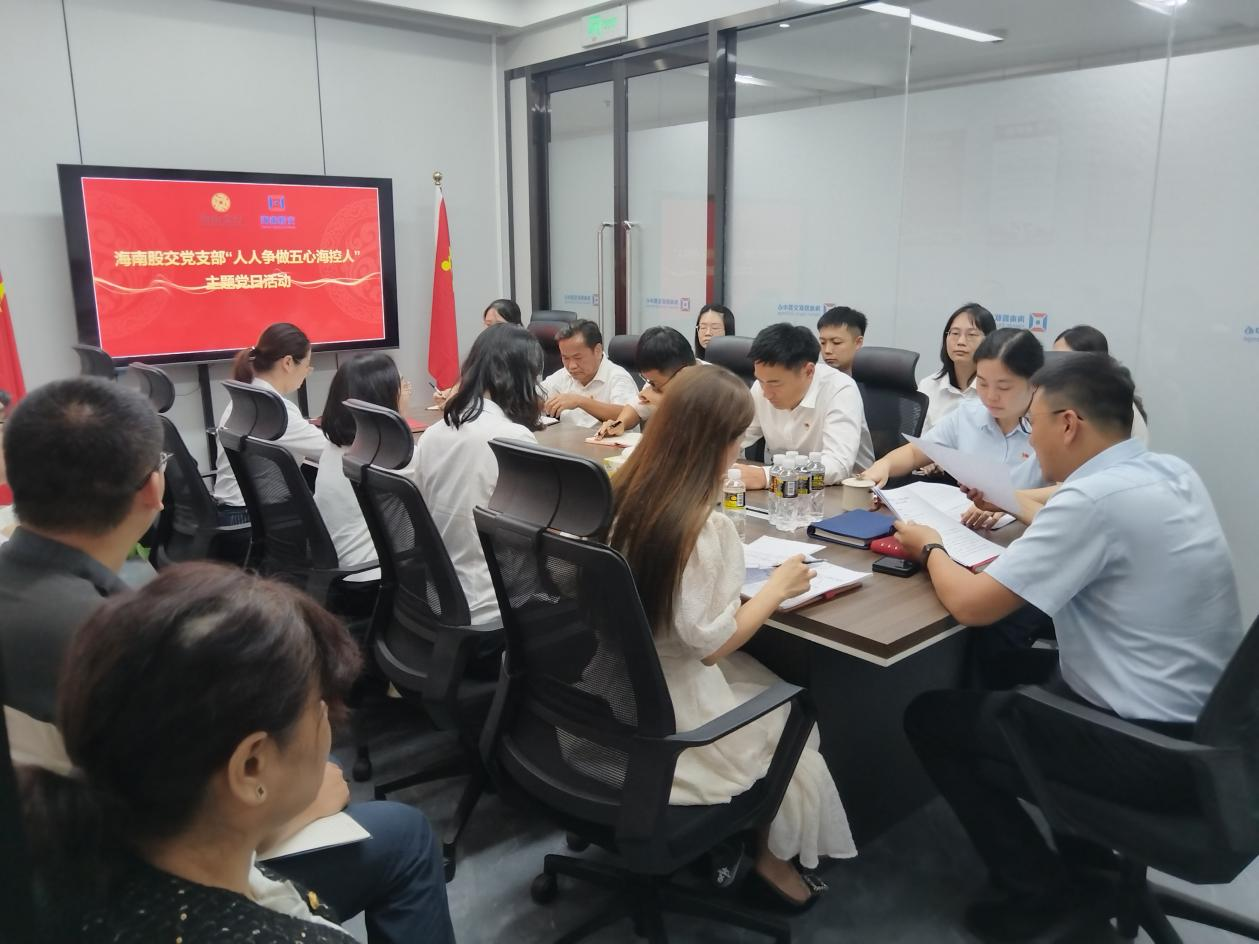 為深入貫徹落實(shí)海南控股“人人爭(zhēng)做五心??厝恕惫ぷ饕?,強(qiáng)化黨員干部責(zé)任擔(dān)當(dāng)意識(shí),提升團(tuán)隊(duì)凝聚力與戰(zhàn)斗力,近日,海南股交黨支部組織開(kāi)展“人人爭(zhēng)做五心??厝恕敝黝}黨日活動(dòng),海南股交黨支部書(shū)記、董事長(zhǎng)朱磊主持會(huì)議并作主題教育,全體員工參加會(huì)議。